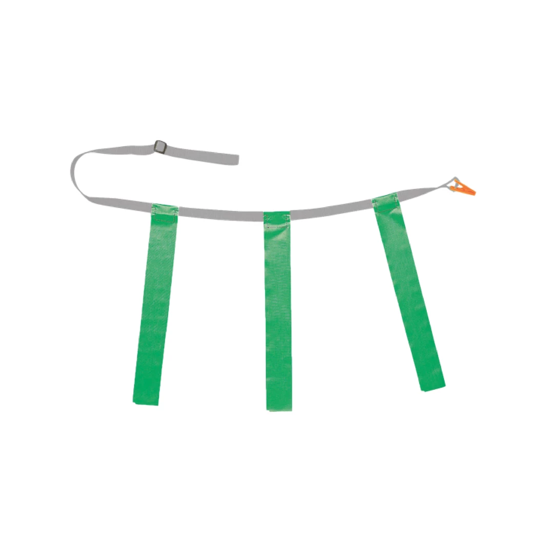 Each belt features three stationary flags